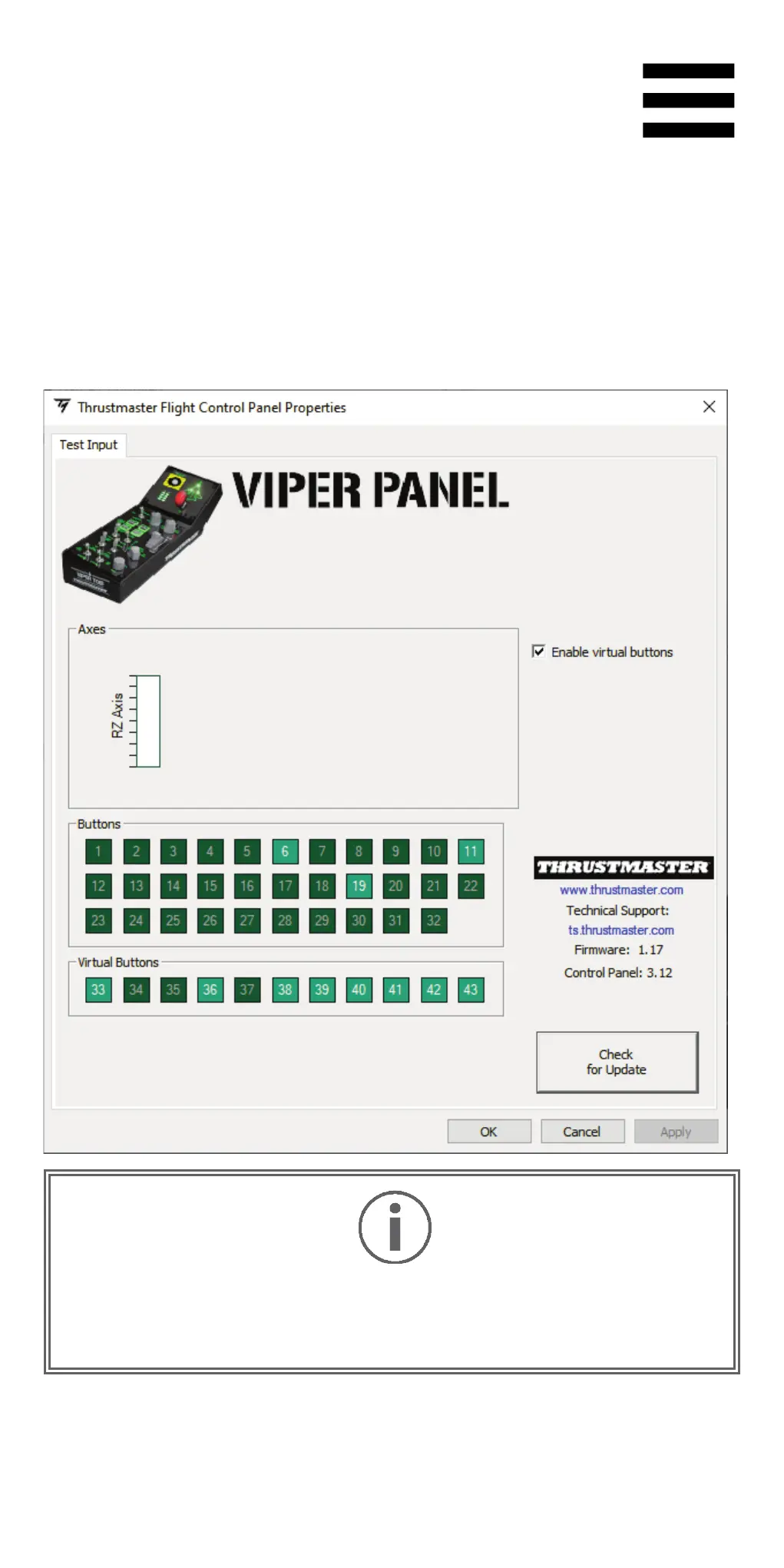 virtuella knapparna på VIPER PANEL (knapp 33 till 43).
