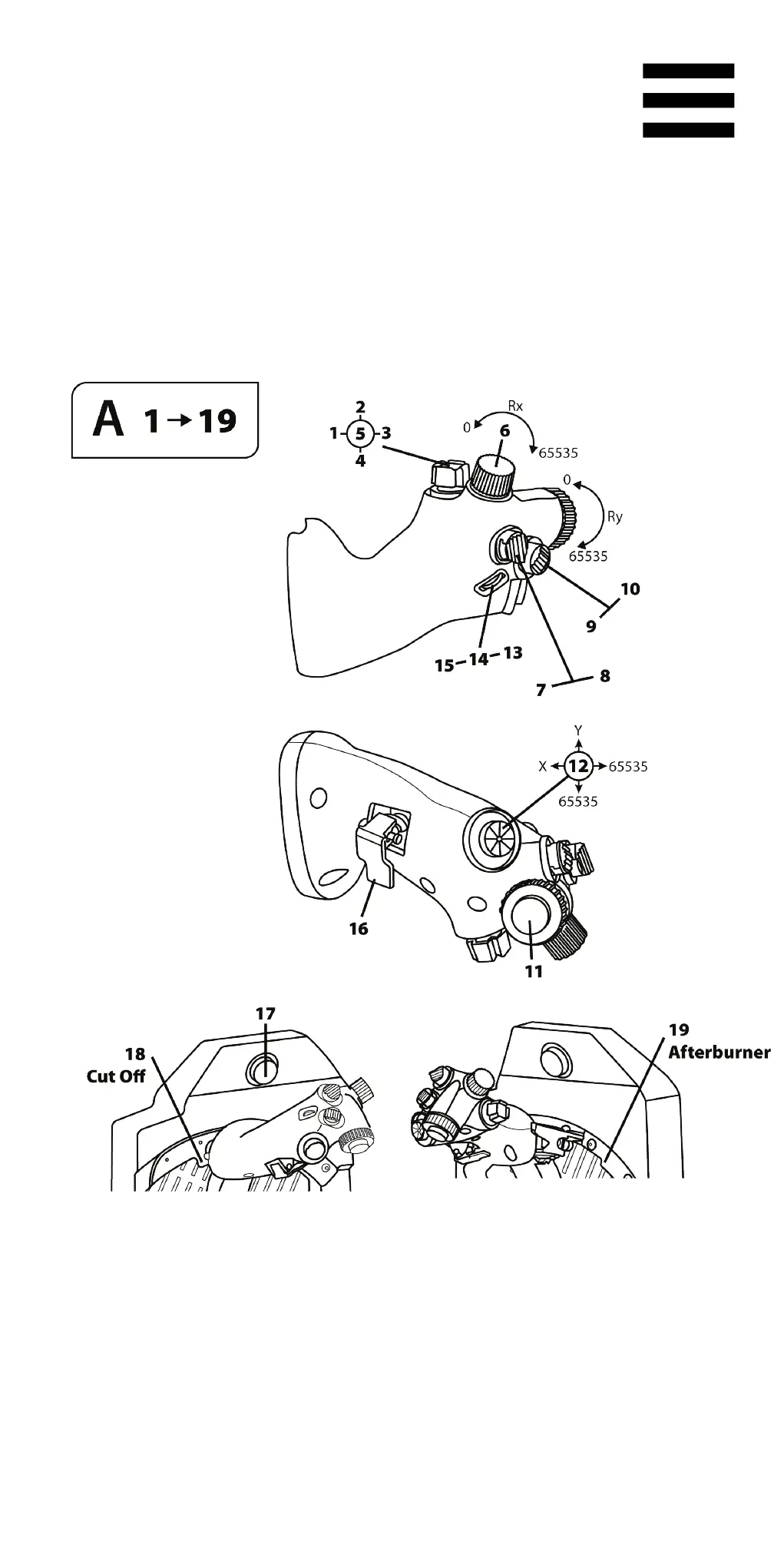 botões e 5 eixos no modo A (sem botões virtuais)