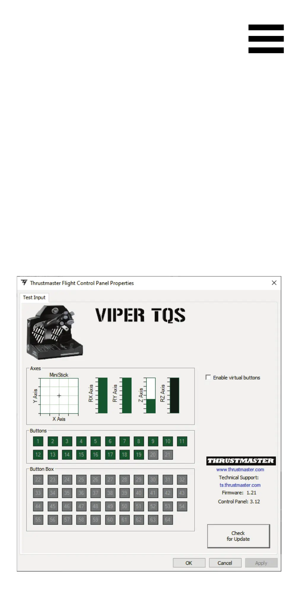 のアプリ] / [Thrustmaster] / [Control Panel] または [コント