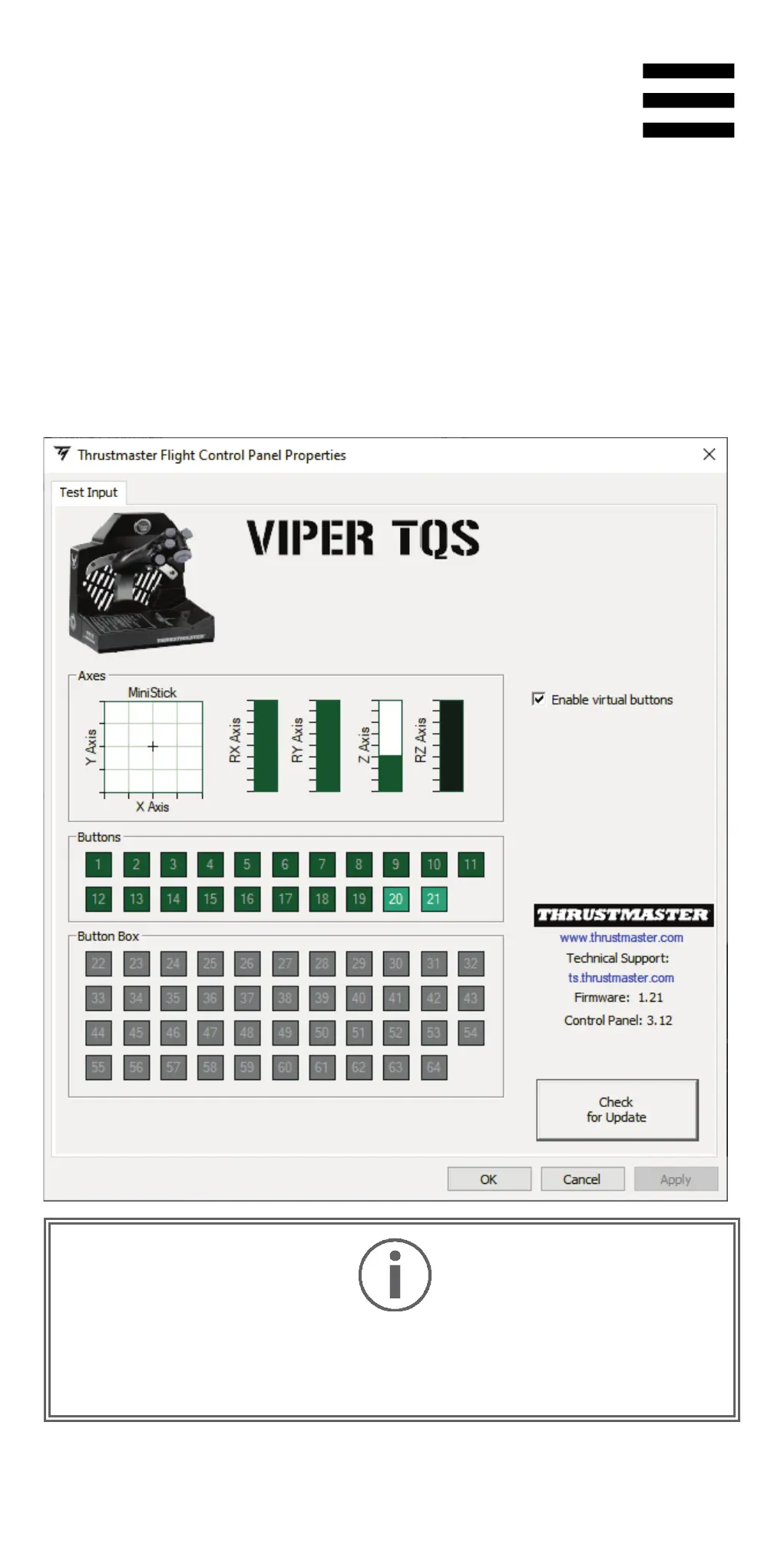 VIPER TQS:n virtuaalipainikkeet ovat oletusarvoisesti
