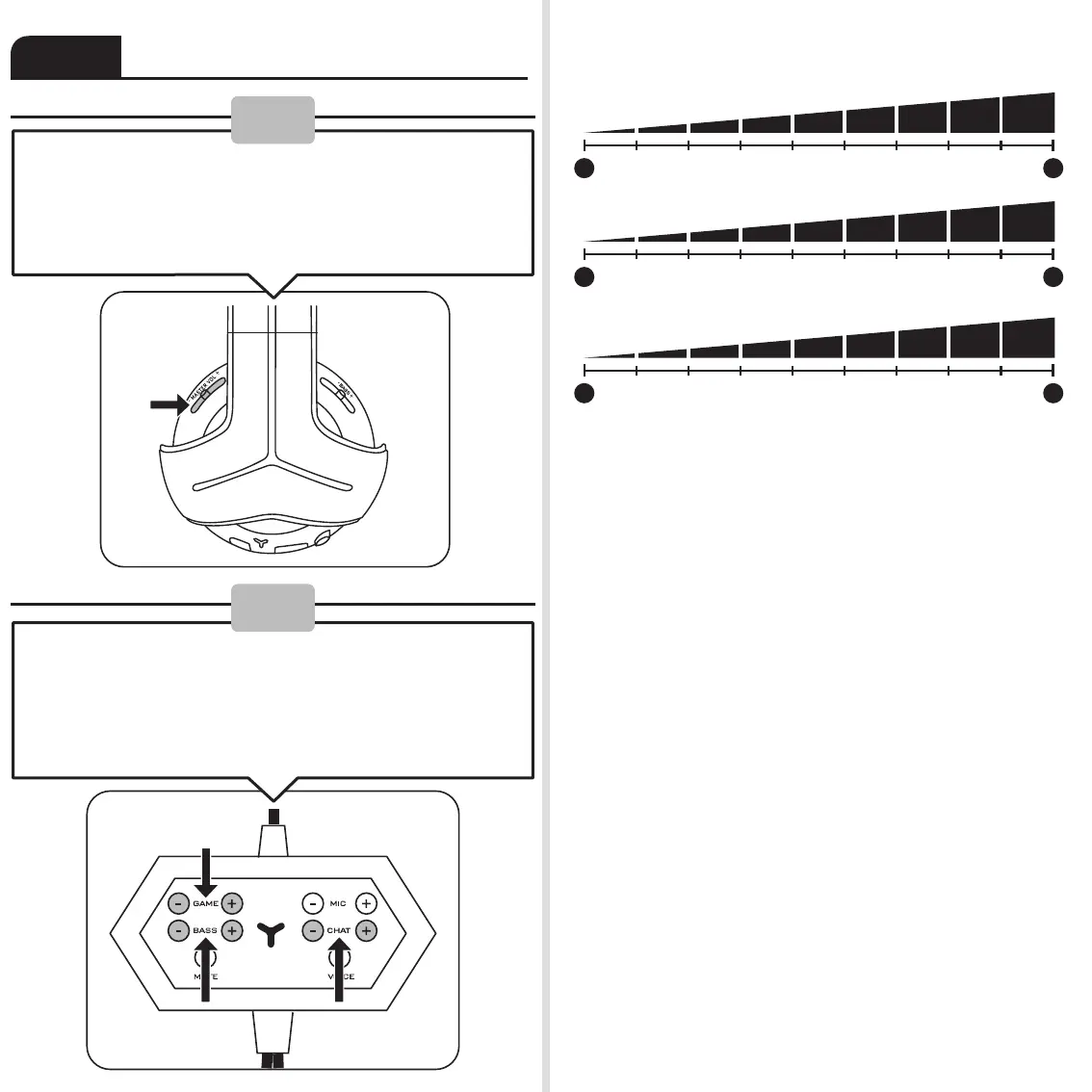 FR- Le réglage des volumes GAME, BASS ET CHAT s’eectue par paliers. Il
