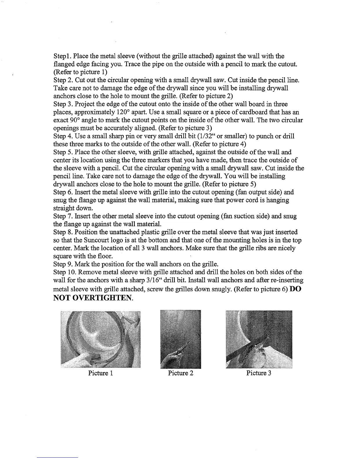 ThruWall TW108 - Wall Opening Preparation; Securing Fan Components