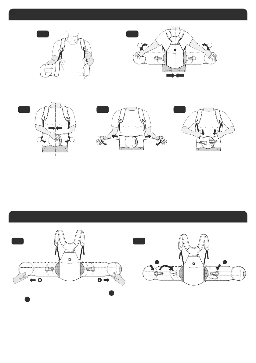 Loosen shoulder straps, detach pull tabs from front of brace and re-attach laterally. Separate wings and