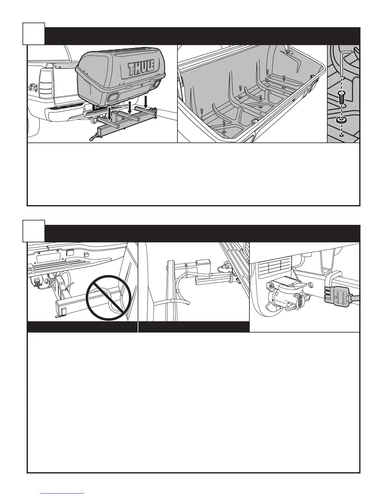 • Secure wire harness to the hitch frame with the cable tie. Make sure that the carrier does not pinch the wiring when swung open and closed (see insert).