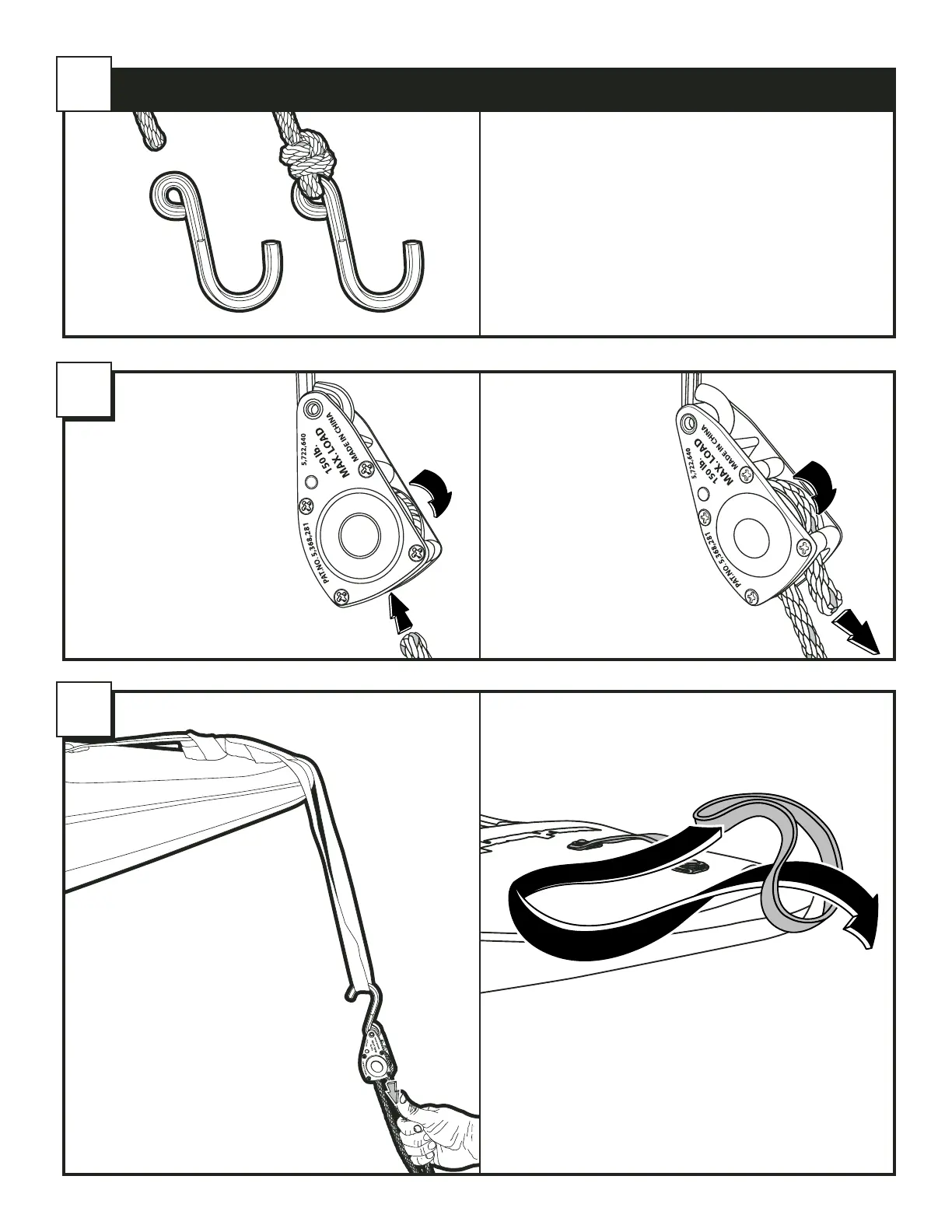 • Carefully attach hook to end of rope.