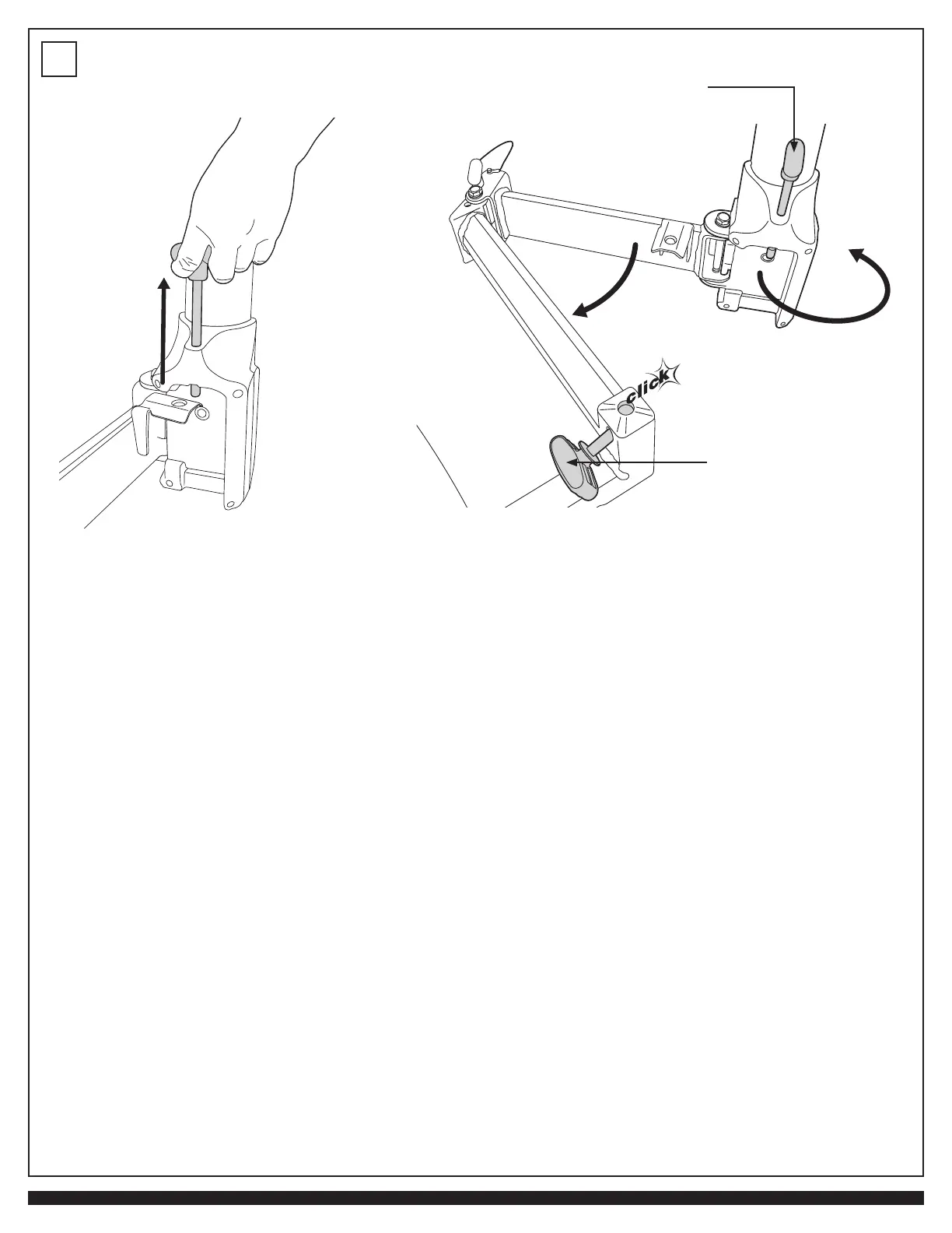 - A. Retirez la broche de maintien d’ouverture. Tirez la broche de verrouillage pour relâcher le bras supérieur et faire tourner les bras de support de