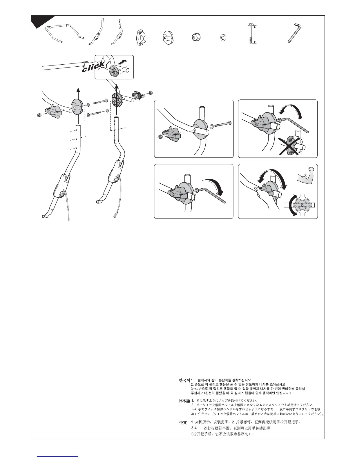 I 1. Montare il pomello come nel diagramma. 2. Serrare la vite finché non è più