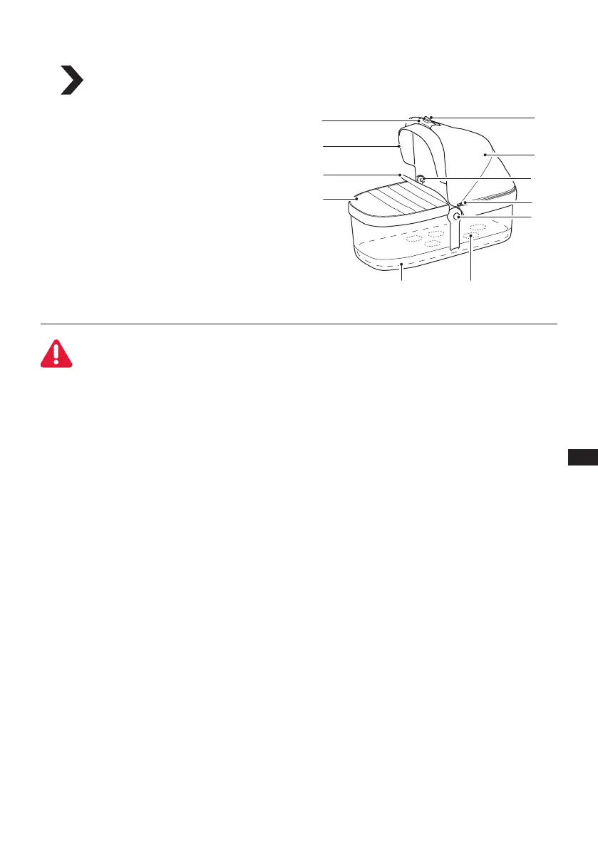 súčastí prasknutá alebo poškodená, kočík