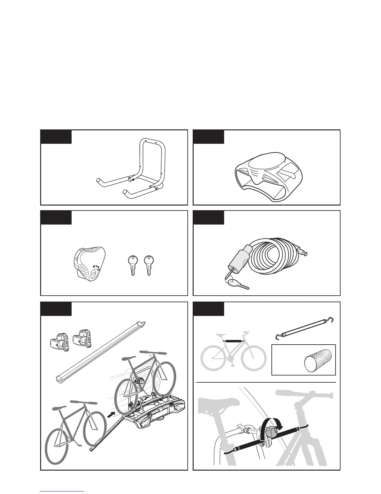 Thule VeloSpace 917 - Specific Accessory Details; Wall Hanger and Torque Limiter Knob; Cable Lock, Frame Adapter, and Loading Aid