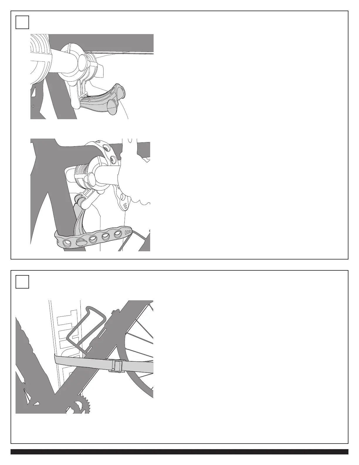- Fije las bicicletas en el mástil del soporte con la correa negra.