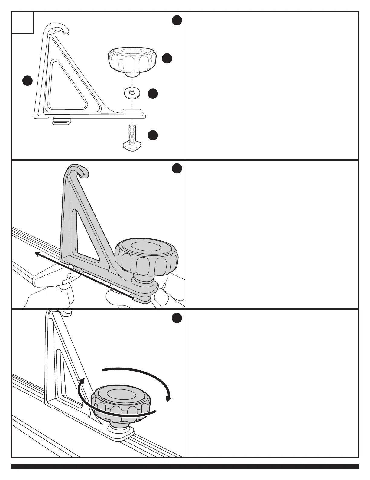 • Pre-assemble all load stops as shown. Attach knob loosely.