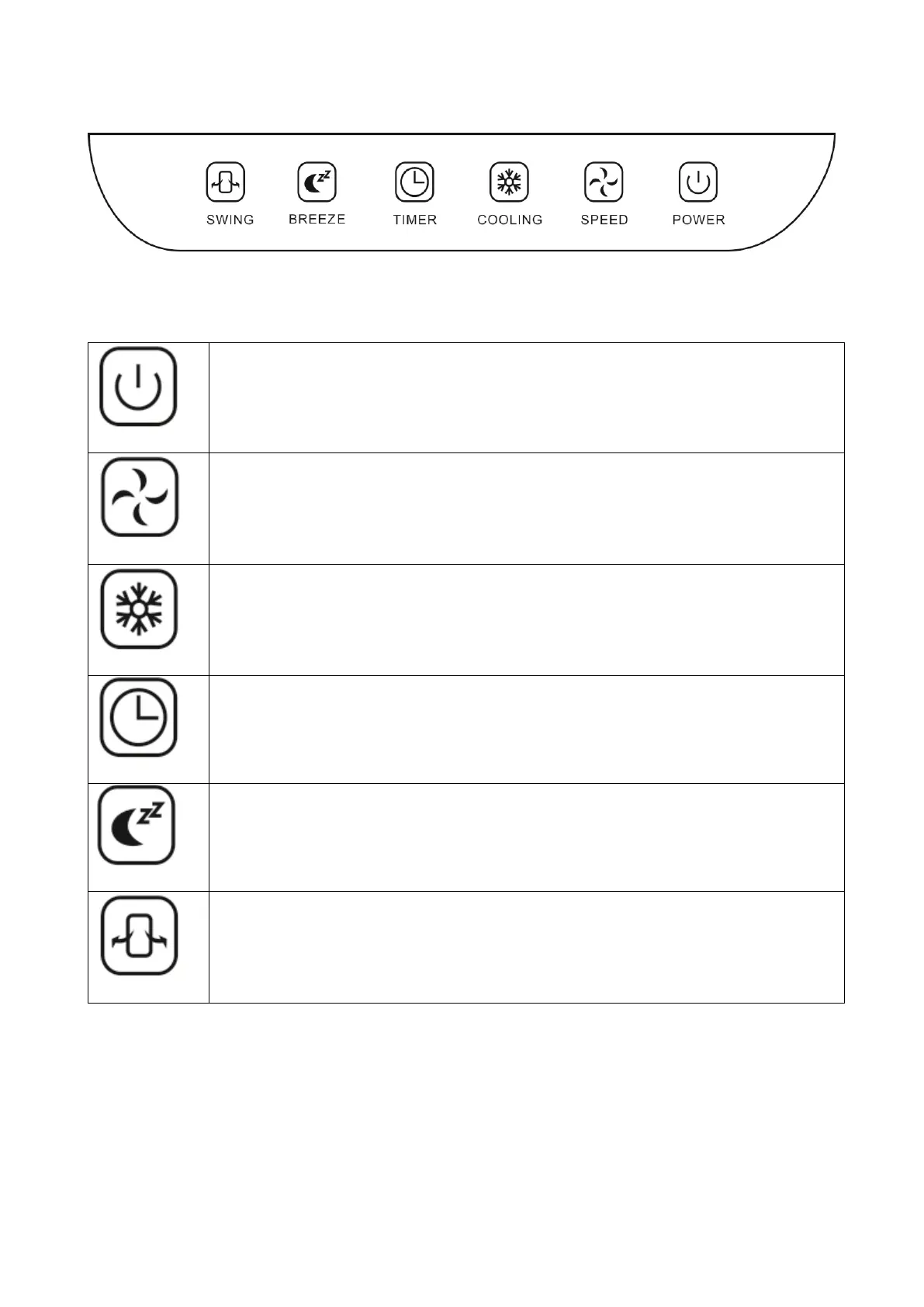 Press to activate the swing mode. The airflow will gently swing from left to right.