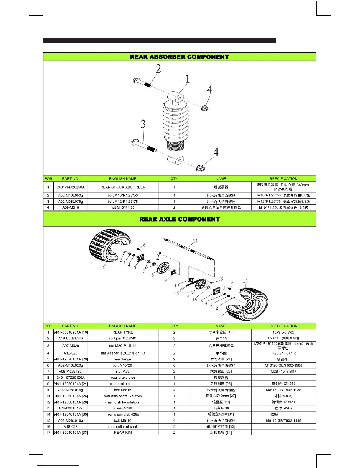 Thump ATV110CC - Rear Absorber Component Parts; Rear Axle Component Parts