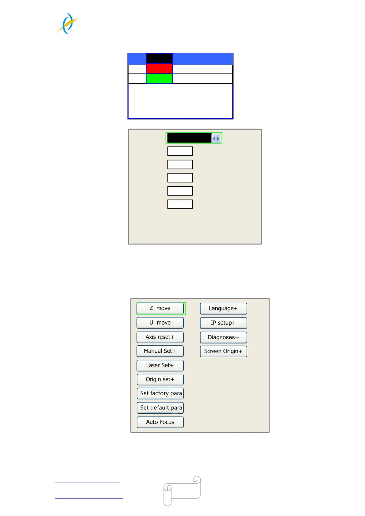 Z Move: When the green block is on “Z Move” item, to move the Z-axis table up