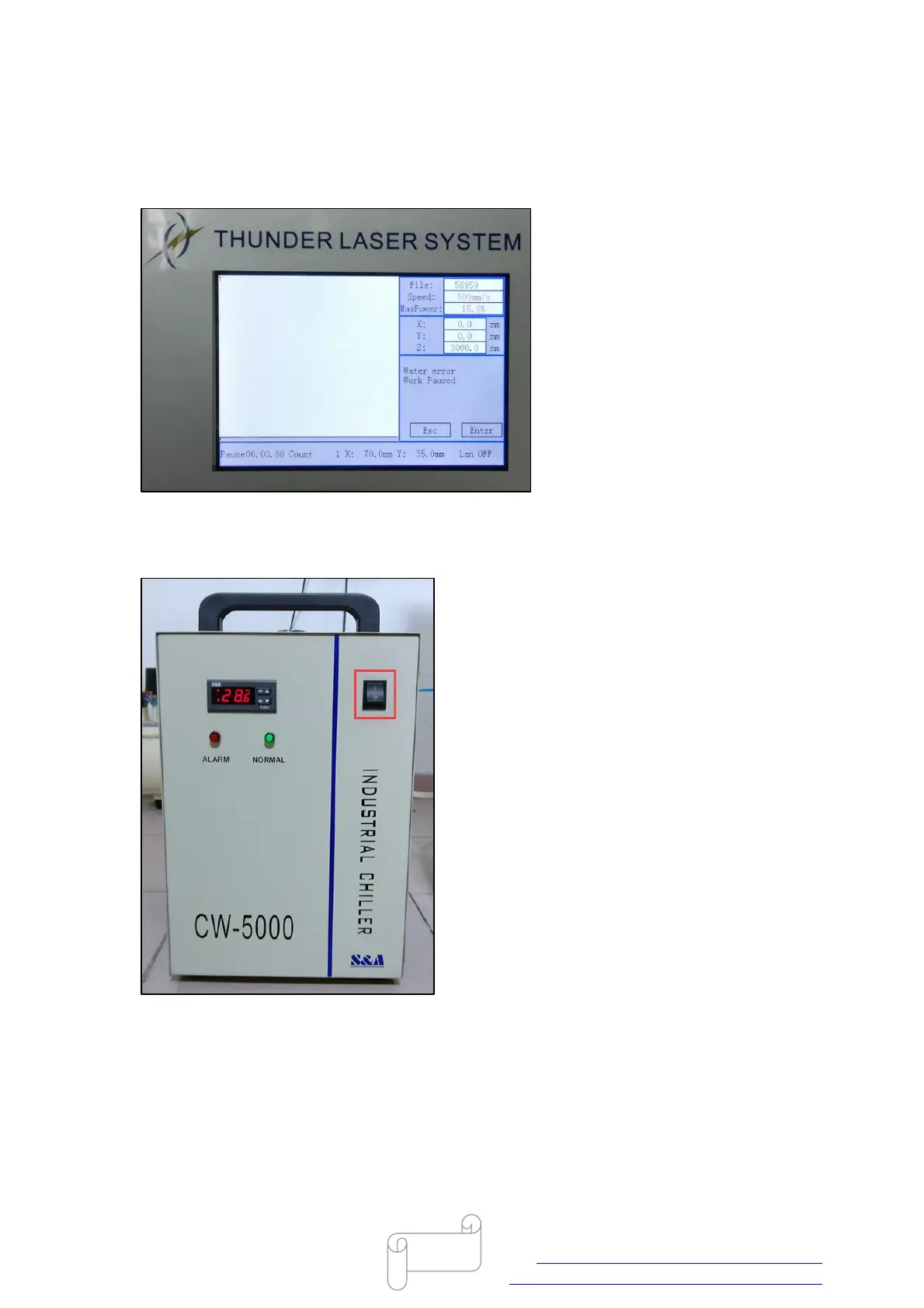 Please turn on the water chiller before power on the machine, like below.