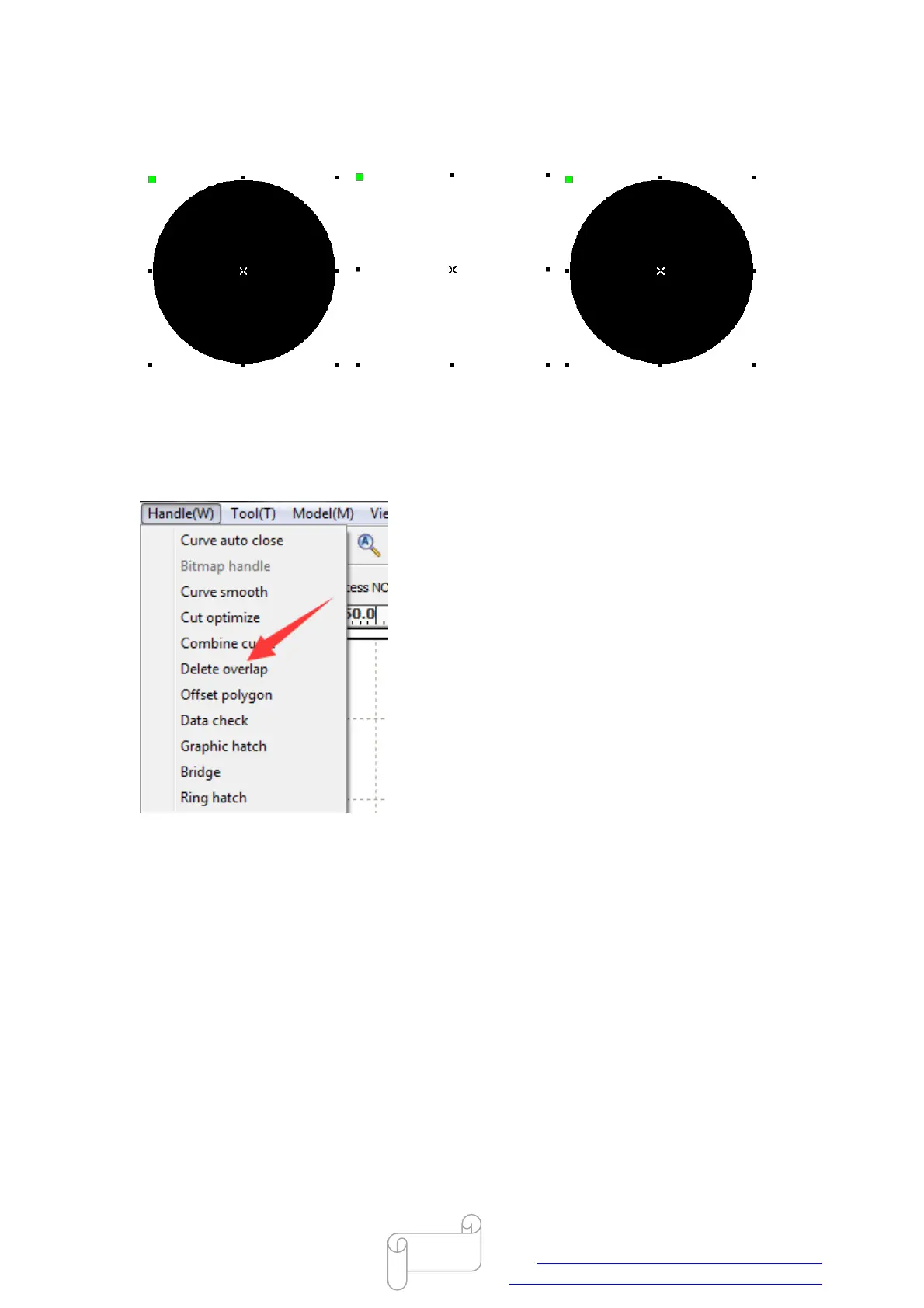 In Rdworks, you can use “Delete overlap” tool to delete all overlapped paths, like below.