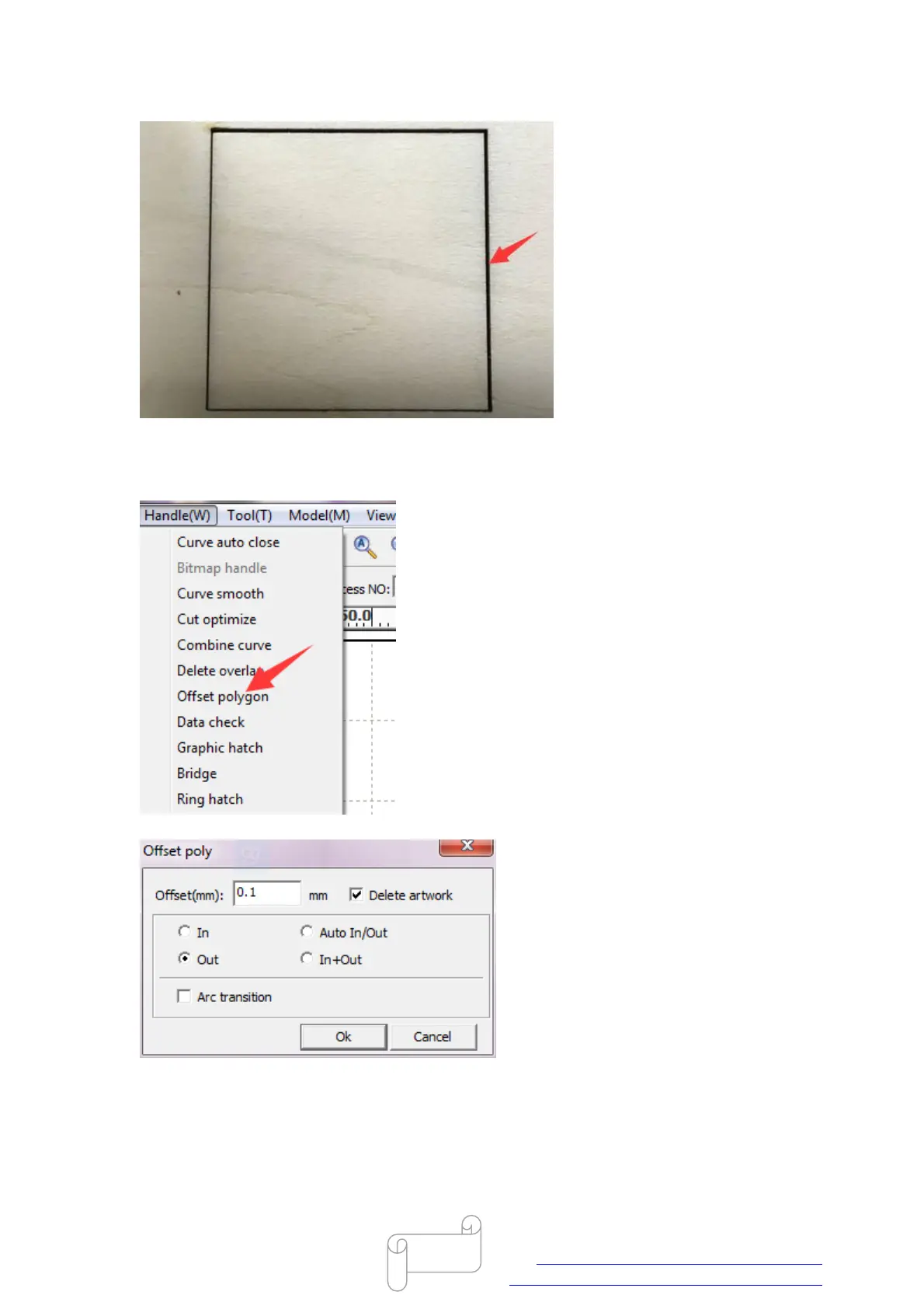 In RDworks, you can use “offset polygon” tool to correct the error.