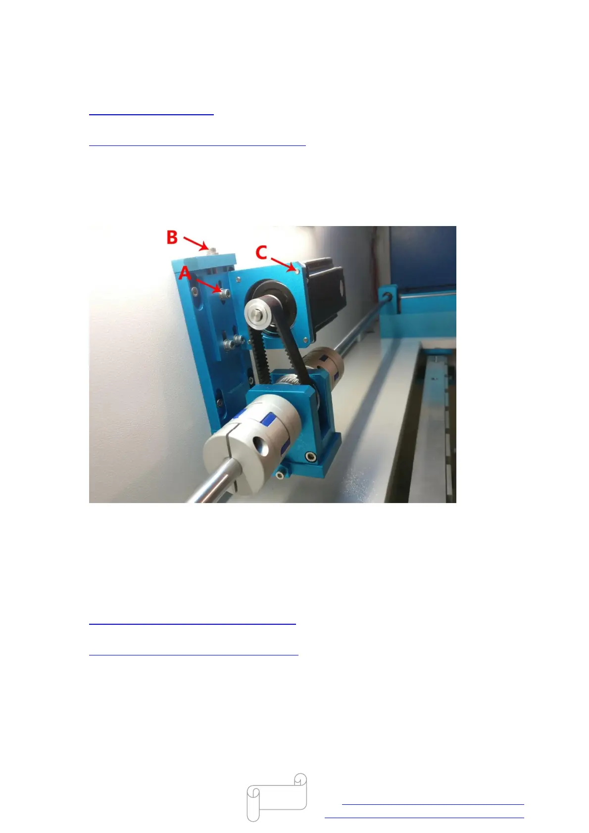 Screw B: It’s for adjusting the belt tension, please loosen the three screws A before adjust belt.