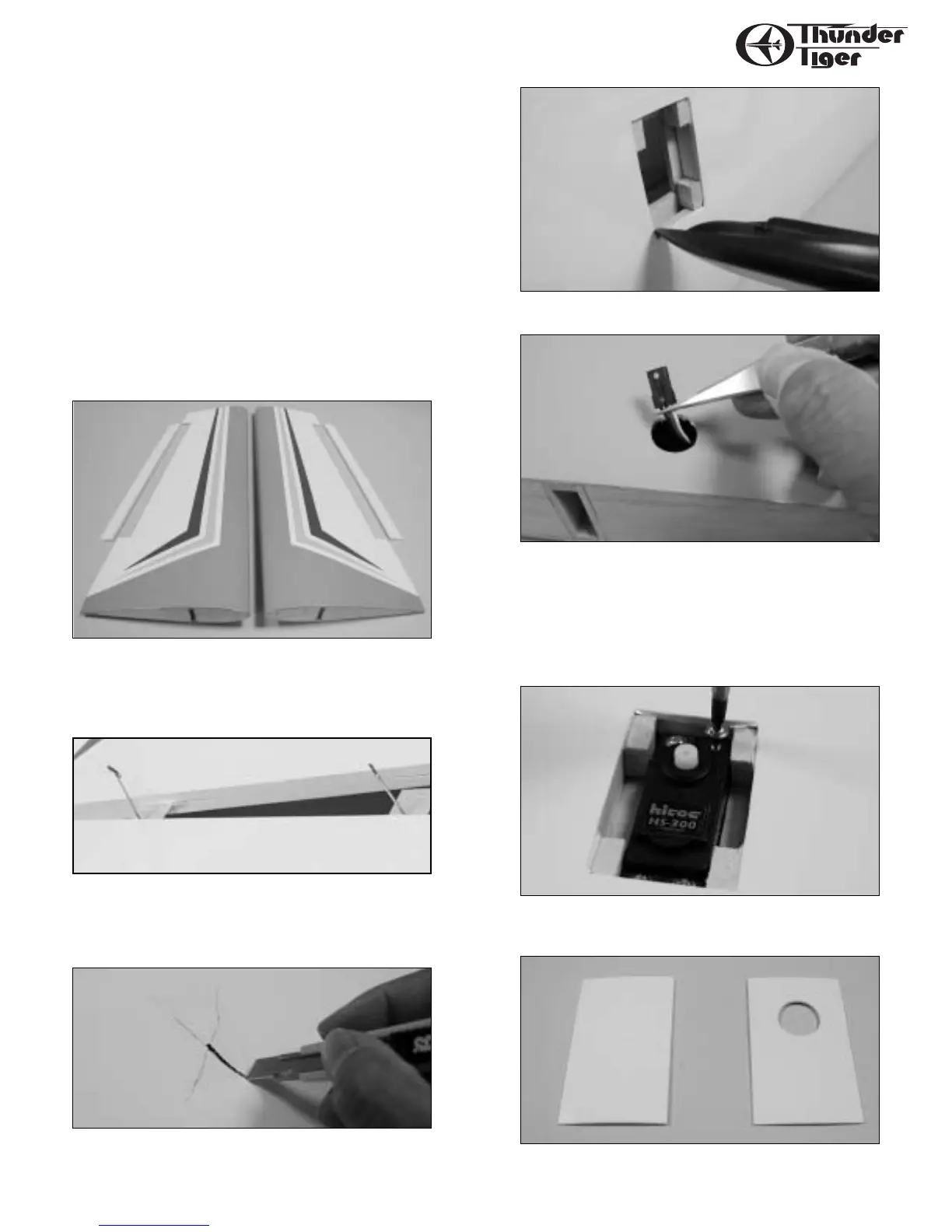 ❏ With the wing panel upside down,locate the servo well and cut an