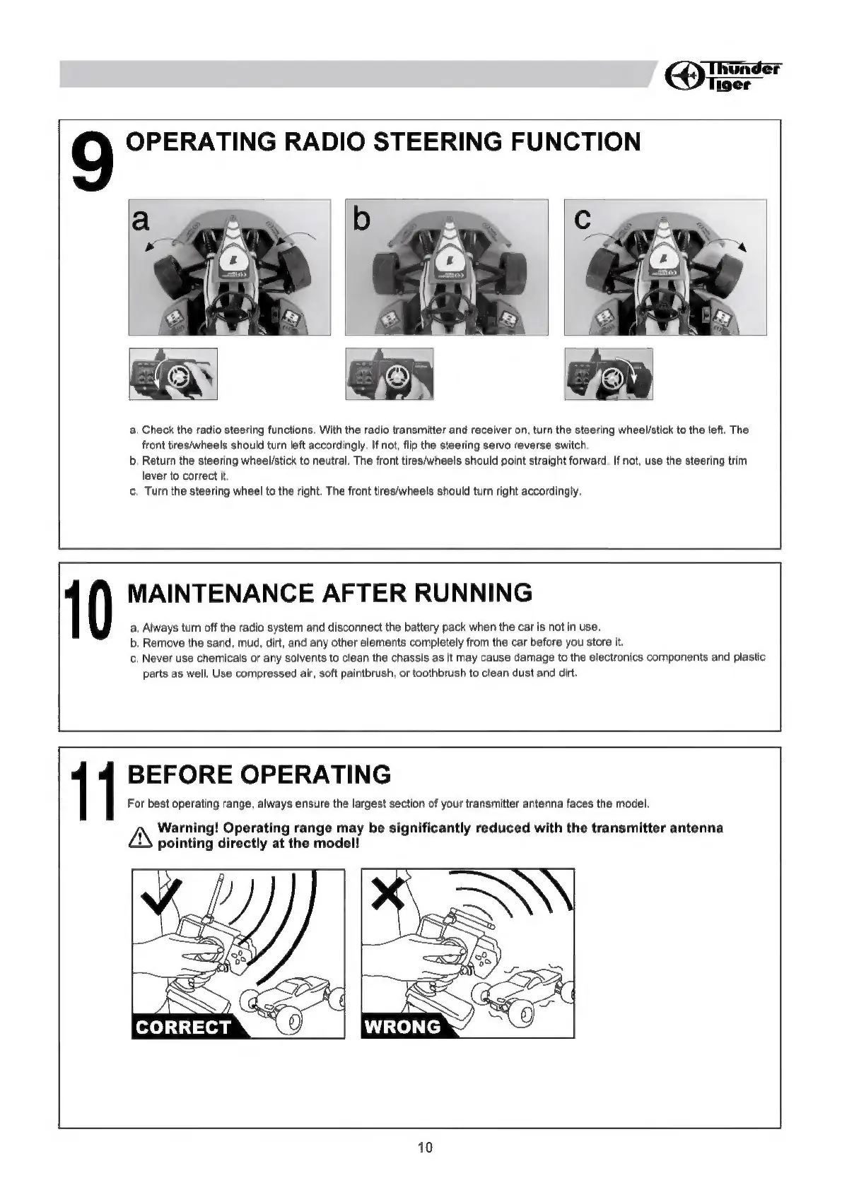 THUNDER TIGER KT8 - Operating Radio Steering Function; Maintenance after Runnin; Before Operating