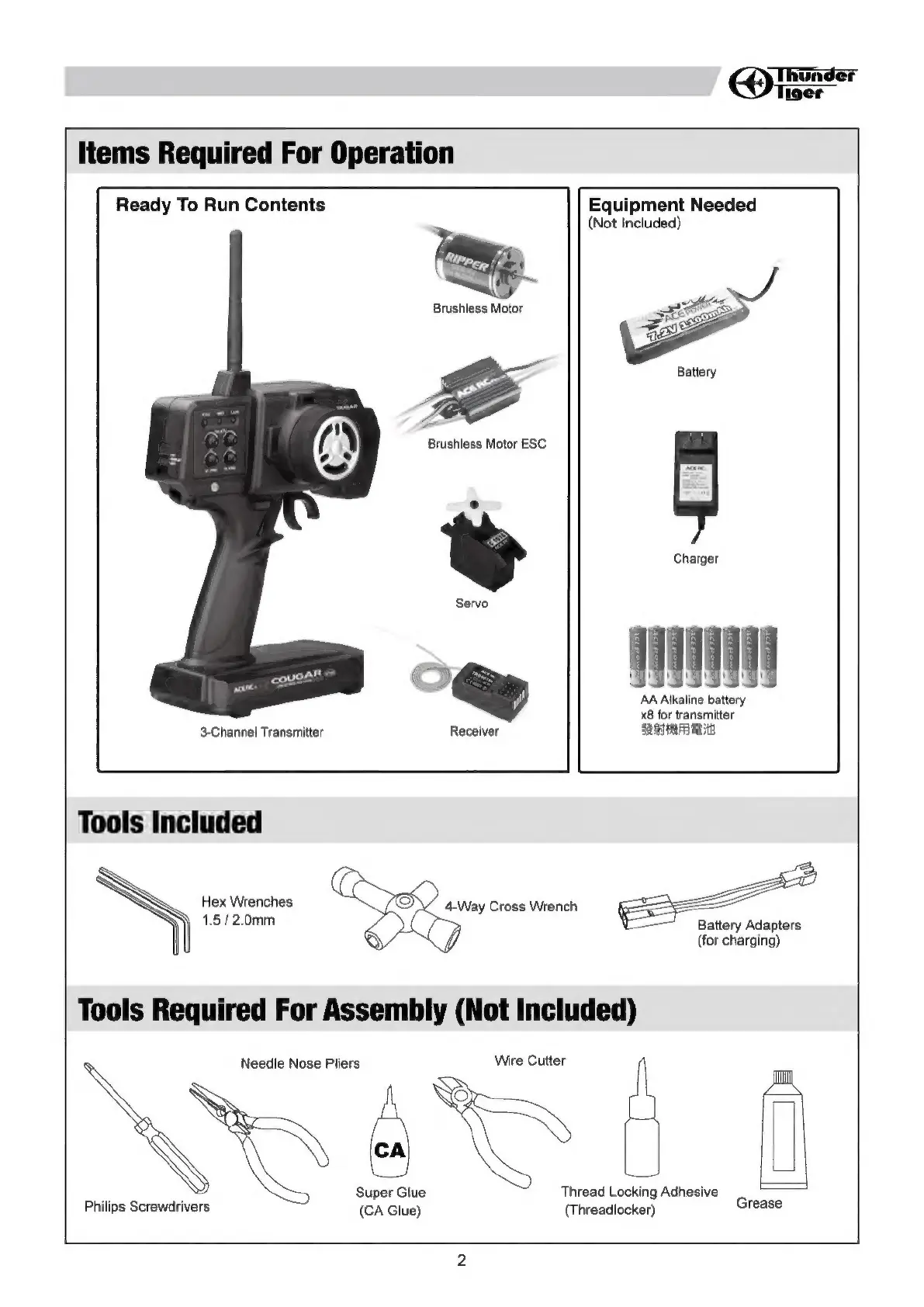 THUNDER TIGER KT8 - Items Required for Operation
