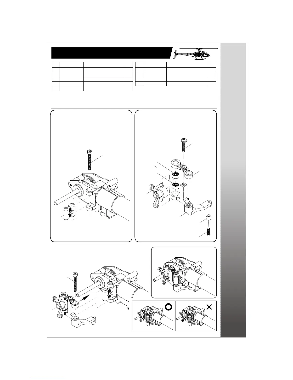 1.Secure the Tail Pitch Control Link to the Tail Pitch Housing. Mind the direction of the chamfer