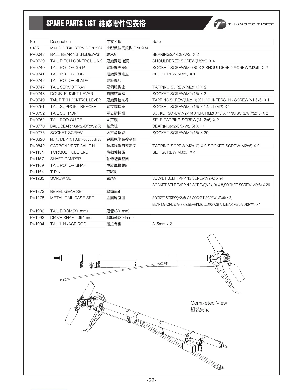 THUNDER TIGER mini Titan E360 - Tail Unit (Rudder Servo) Spare Parts List; Tail Unit Parts
