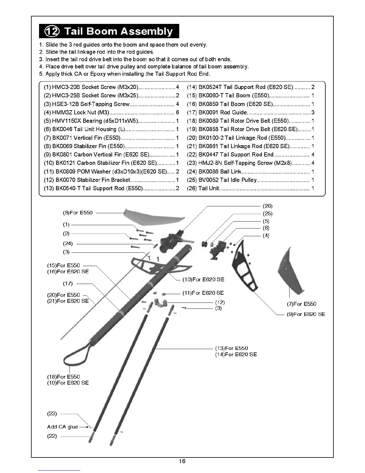 THUNDER TIGER Raptor E 550 - Tail Boom Assembly