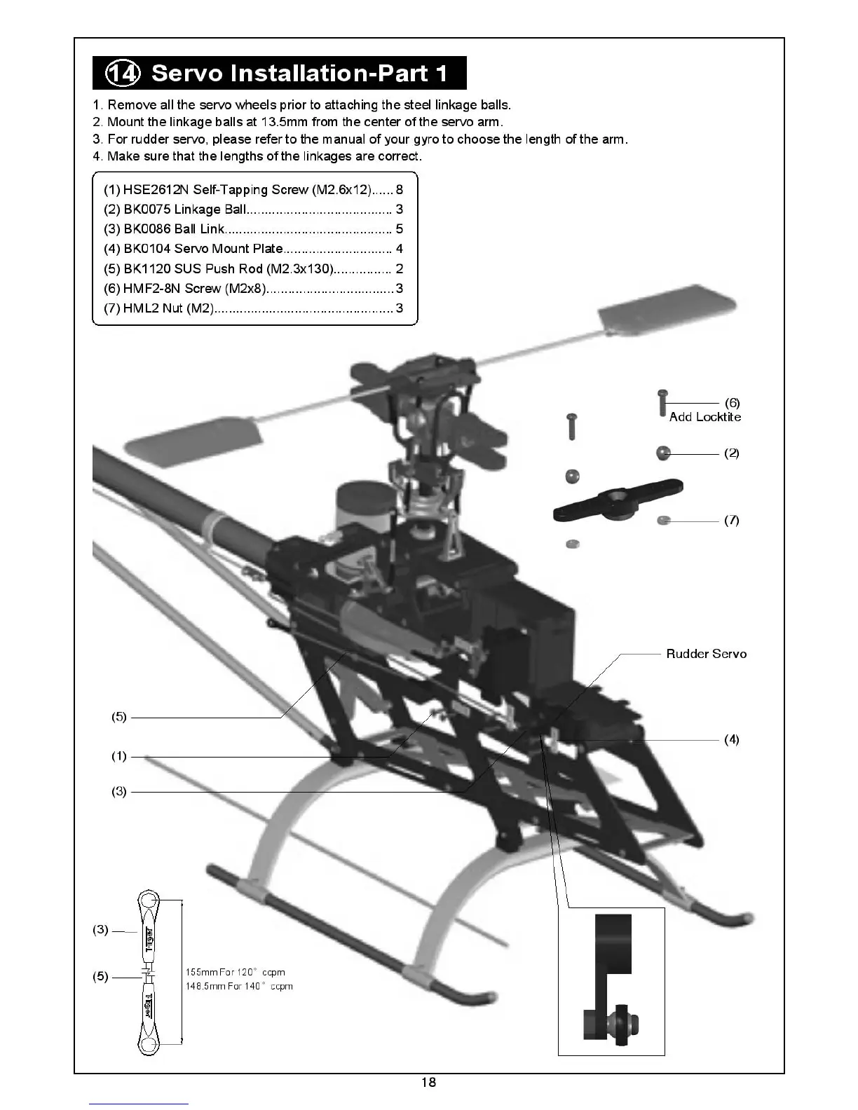 THUNDER TIGER Raptor E 550 - Servo Installation; Servo Installation - Part 1