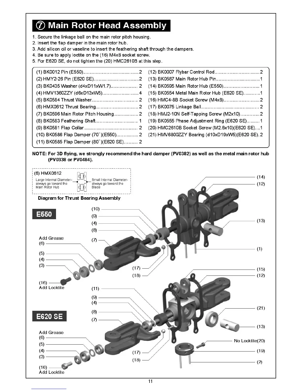 THUNDER TIGER Raptor E 620 SE - Main Rotor Head Assembly