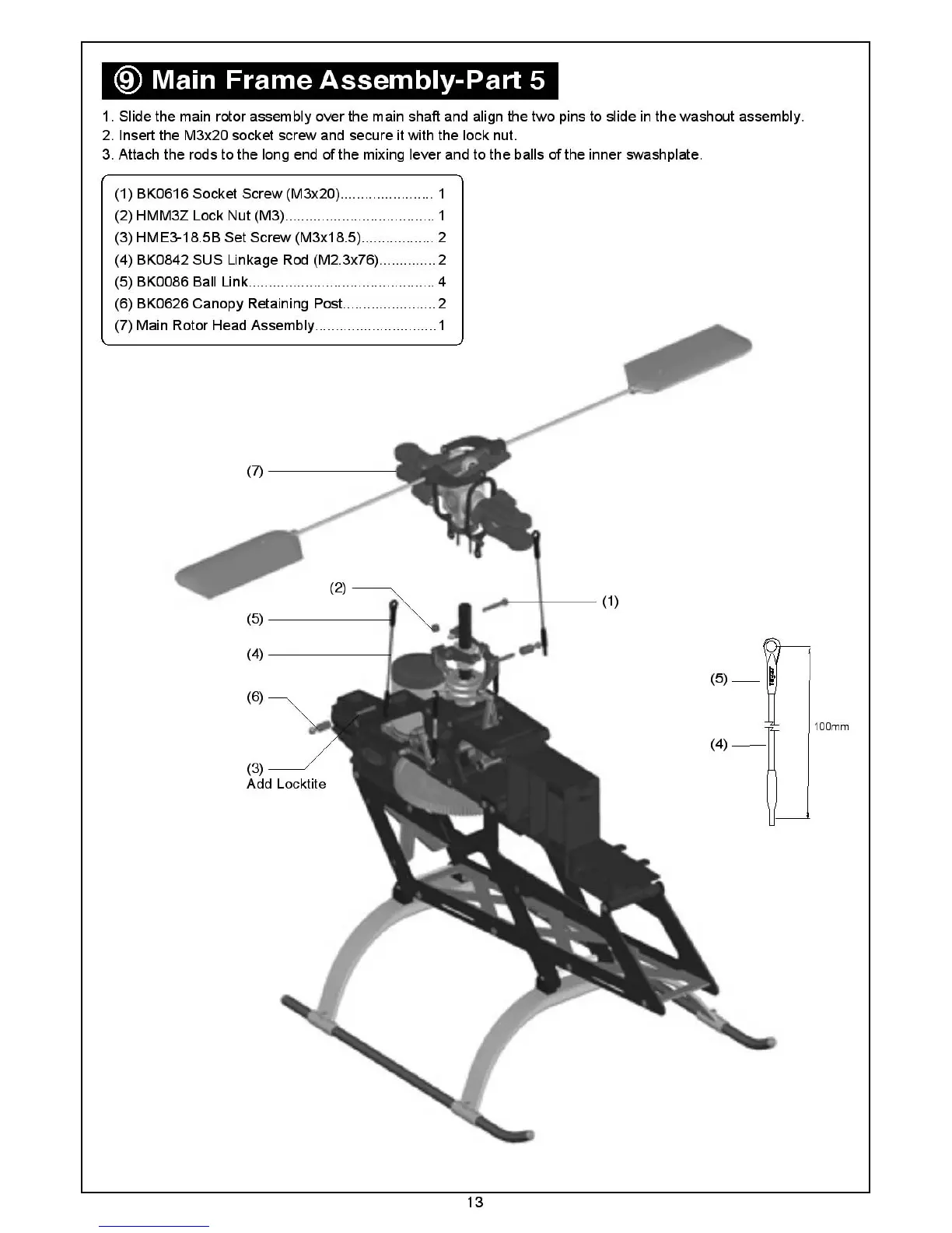 THUNDER TIGER Raptor E 620 SE - Main Frame Assembly-Part 5