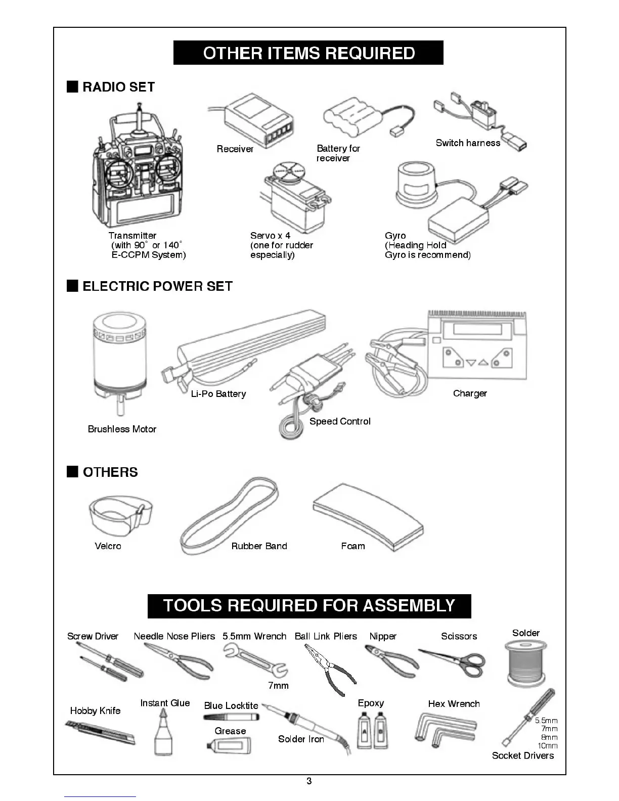 THUNDER TIGER Raptor E 620 SE - Other Items Required; Tools Required for Assembly