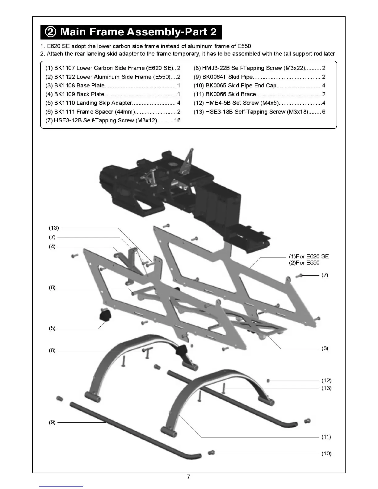 THUNDER TIGER Raptor E 620 SE - Main Frame Assembly-Part 2
