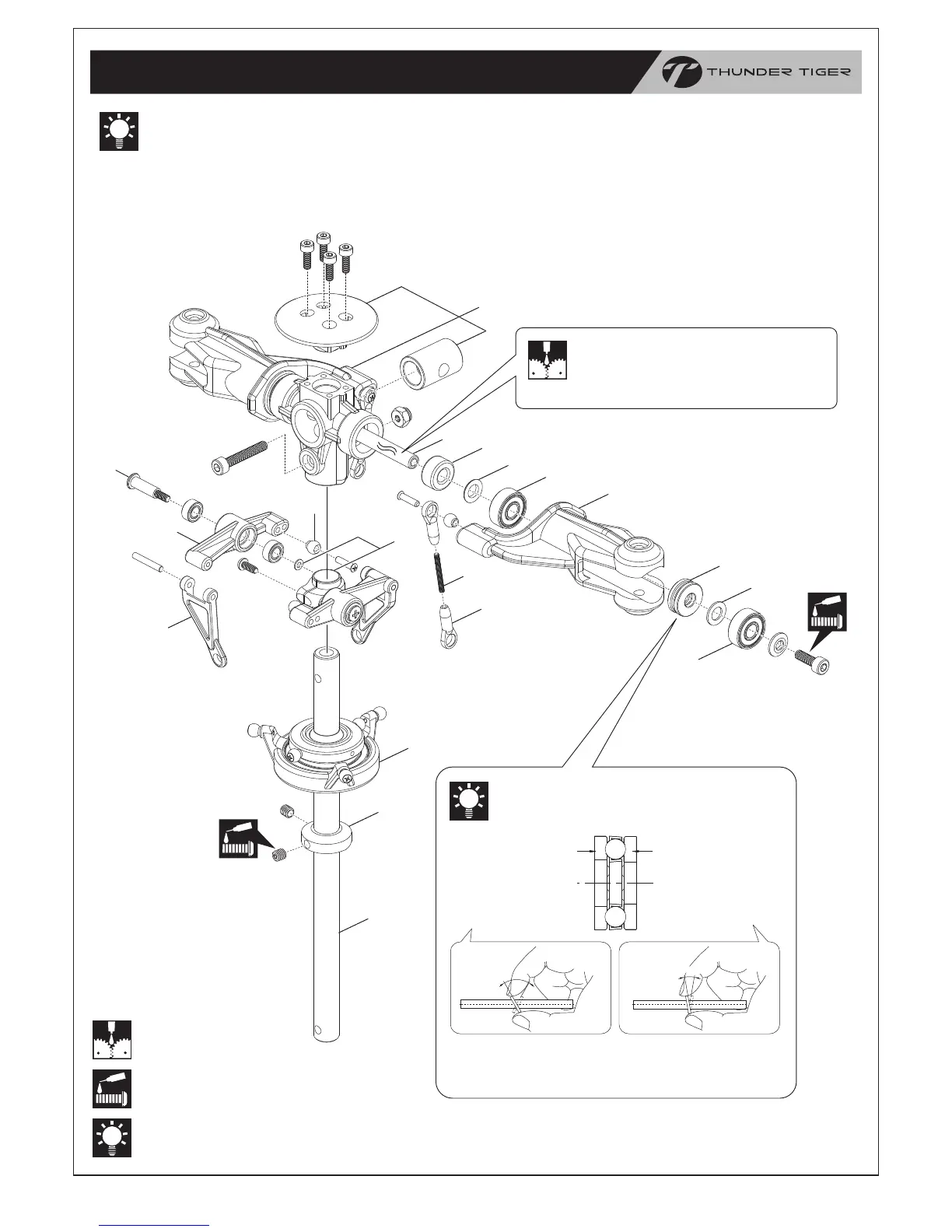 THUNDER TIGER Raptor E300 md - Main Rotor Head 主旋翼頭; Exploded View & Spare Parts List 爆炸圖檢索 & 維修零件包表格