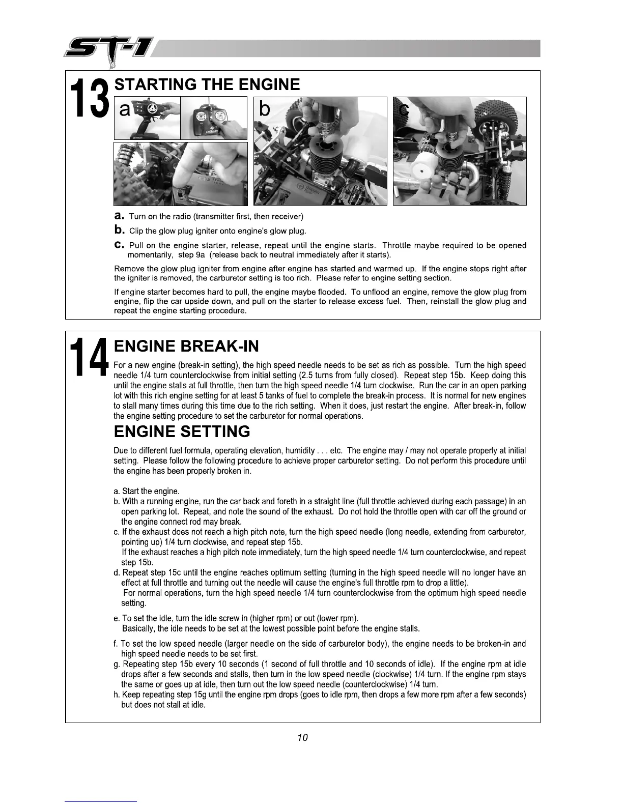 THUNDER TIGER ST-1 - Starting the Engine; Engine Break-In; Engine Setting