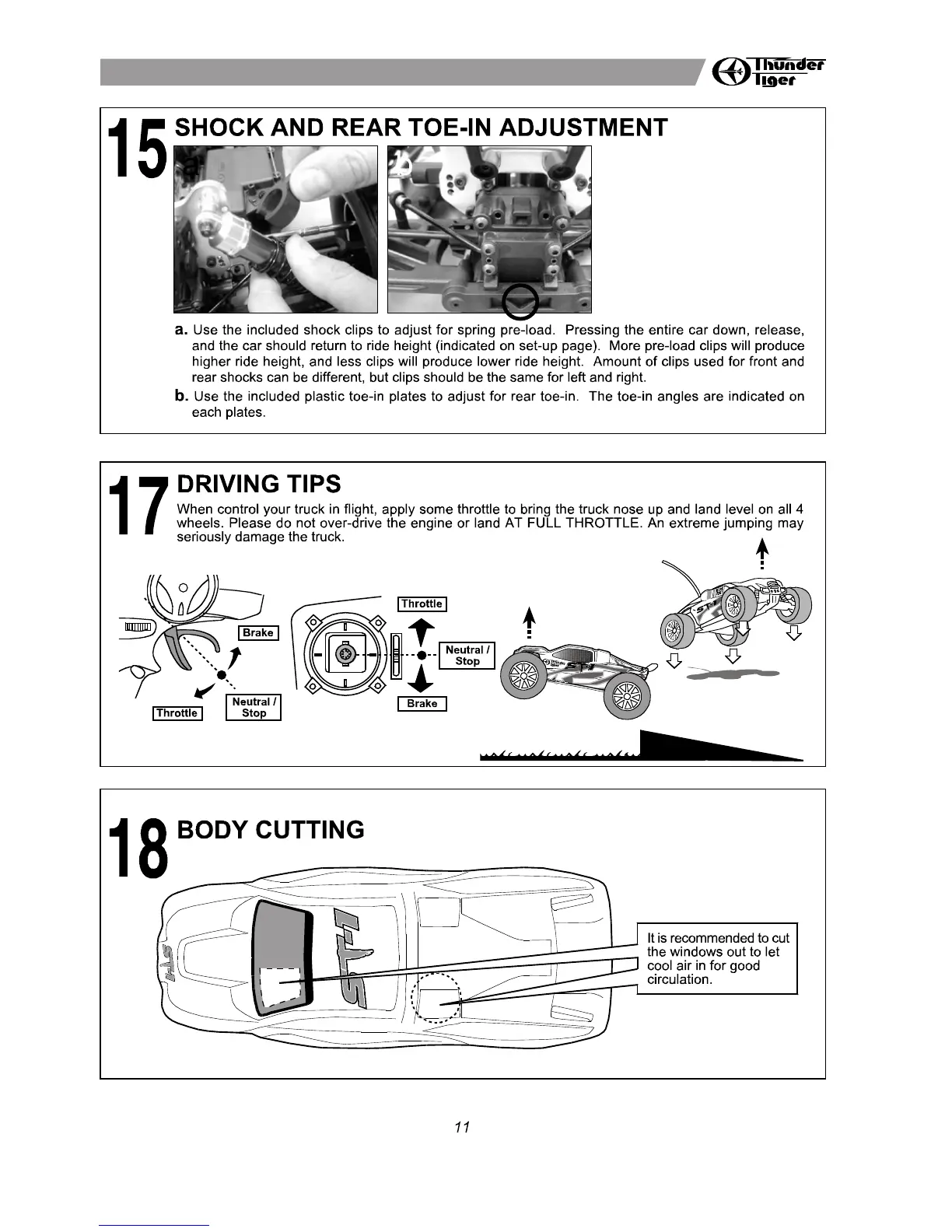 THUNDER TIGER ST-1 - Shock and Rear Toe-In Adjustment; Driving Tips; Body Cutting