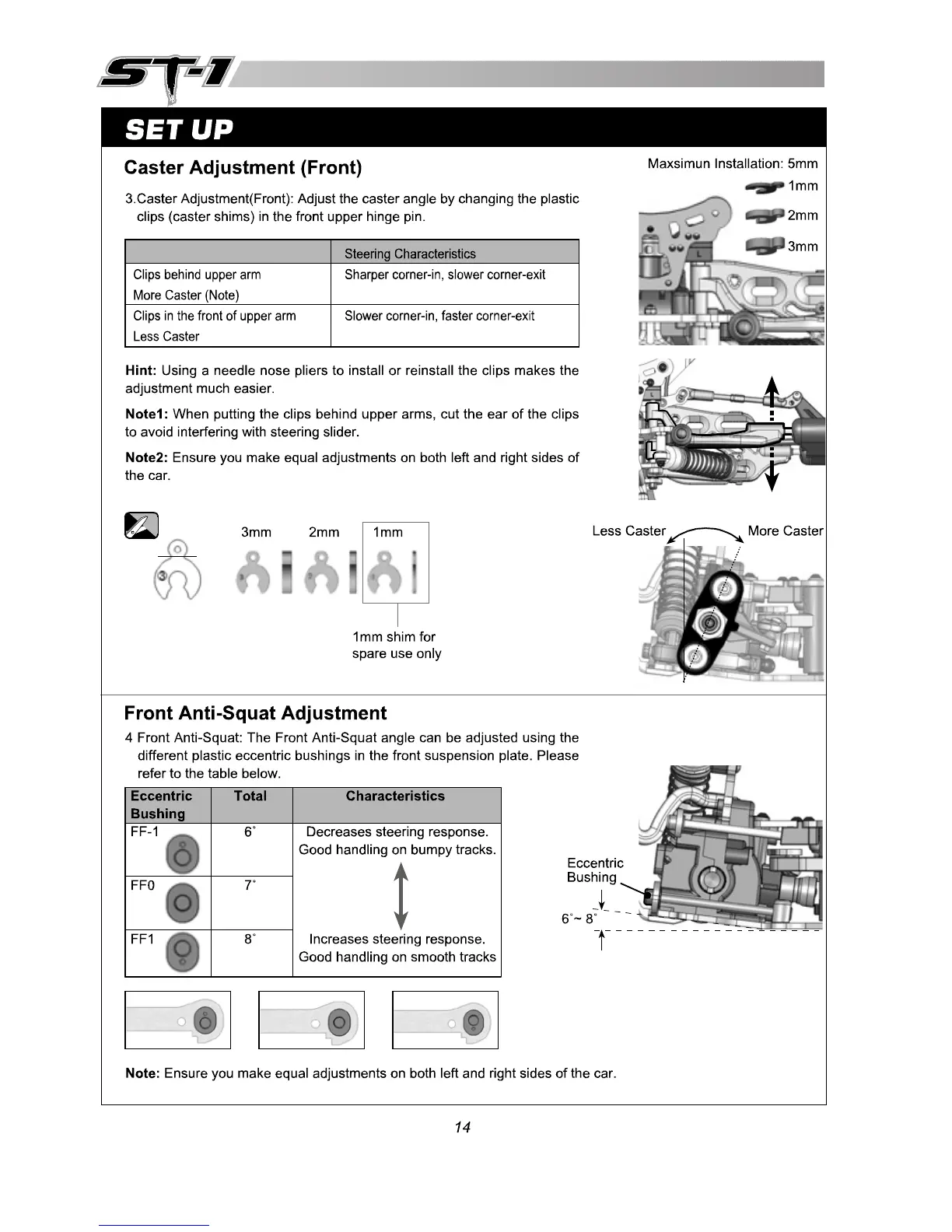 THUNDER TIGER ST-1 - Caster Adjustment; Front Anti-Squat Adjustment