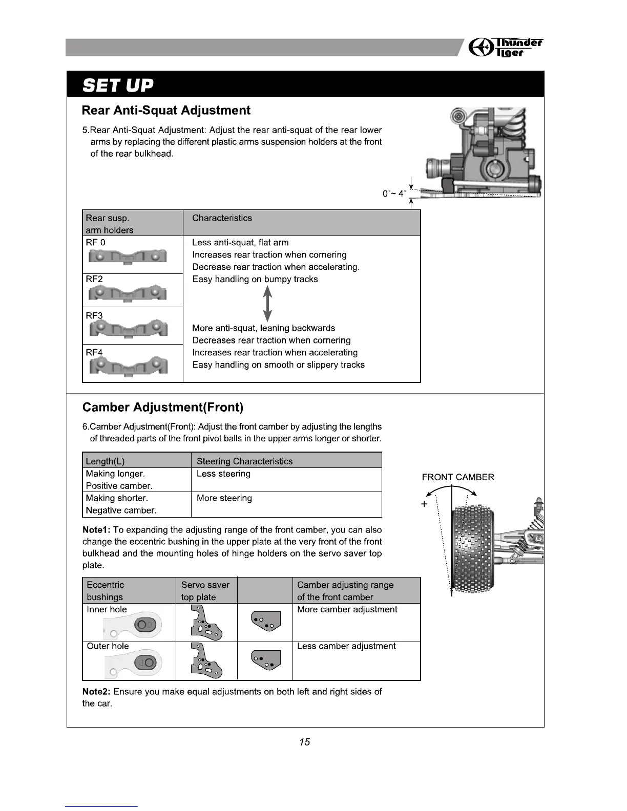 THUNDER TIGER ST-1 - Rear Anti-Squat Adjustment; Camber Adjustment