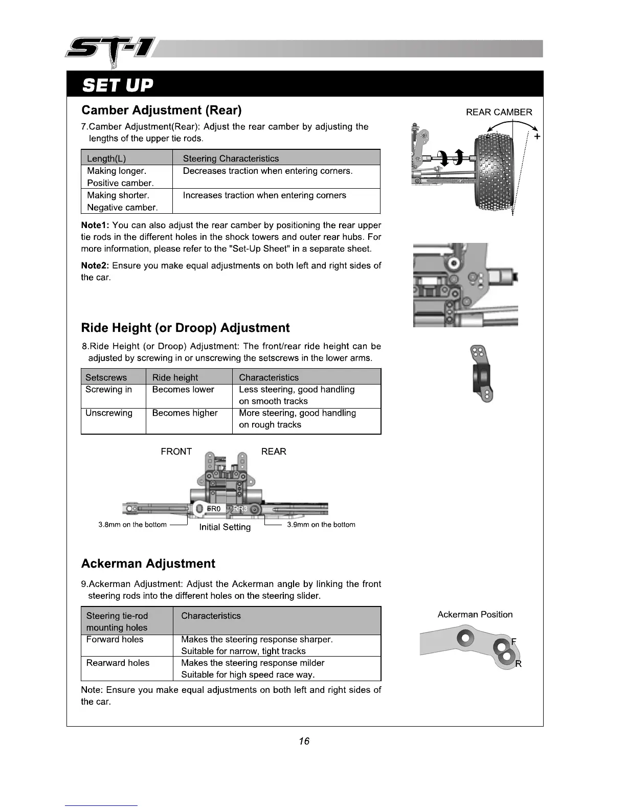 THUNDER TIGER ST-1 - Ride Height or Droop Adjustment; Ackerman Adjustment