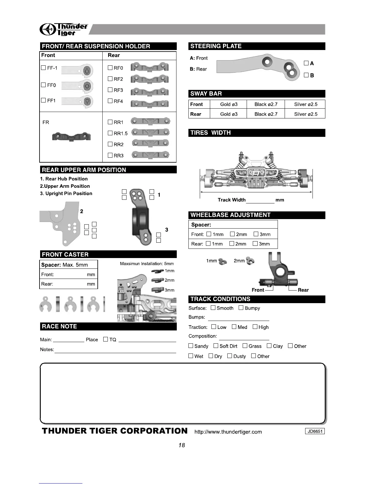 THUNDER TIGER ST-1 - Front;Rear Suspension Holder; Rear Upper Arm Position; Front Caster; Steering Plate