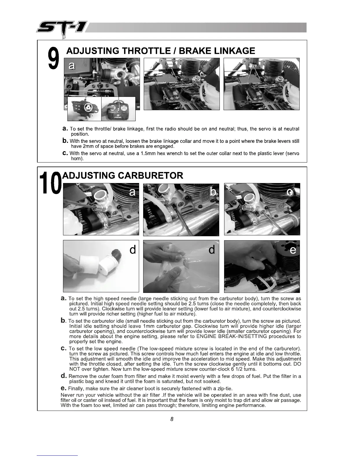 THUNDER TIGER ST-1 - Adjusting Throttle;Brake Linkage; Adjusting Carburetor