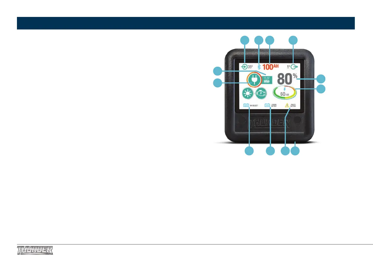 The Thunder 30A Battery Management System comes with a Bluetooth LCD interface