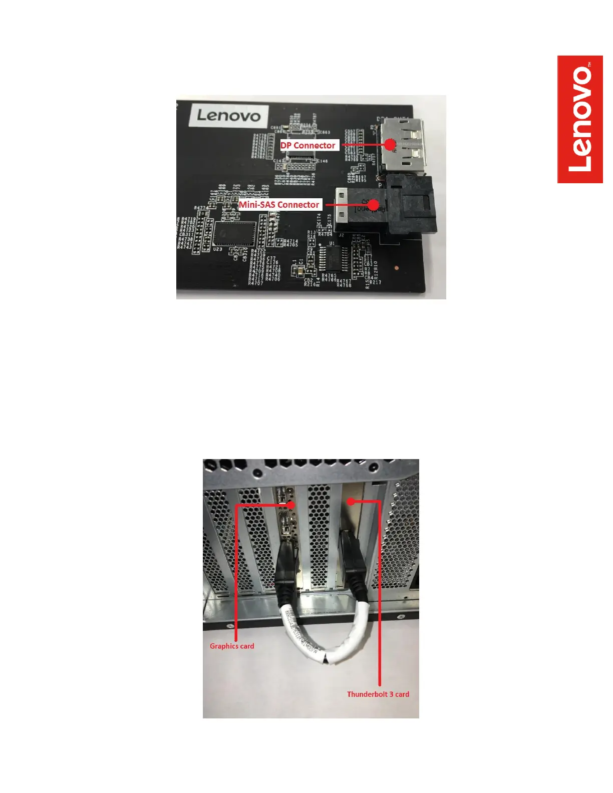 - DP to DP and mini-SAS cables: connected to the front of the PCIe x4 card as