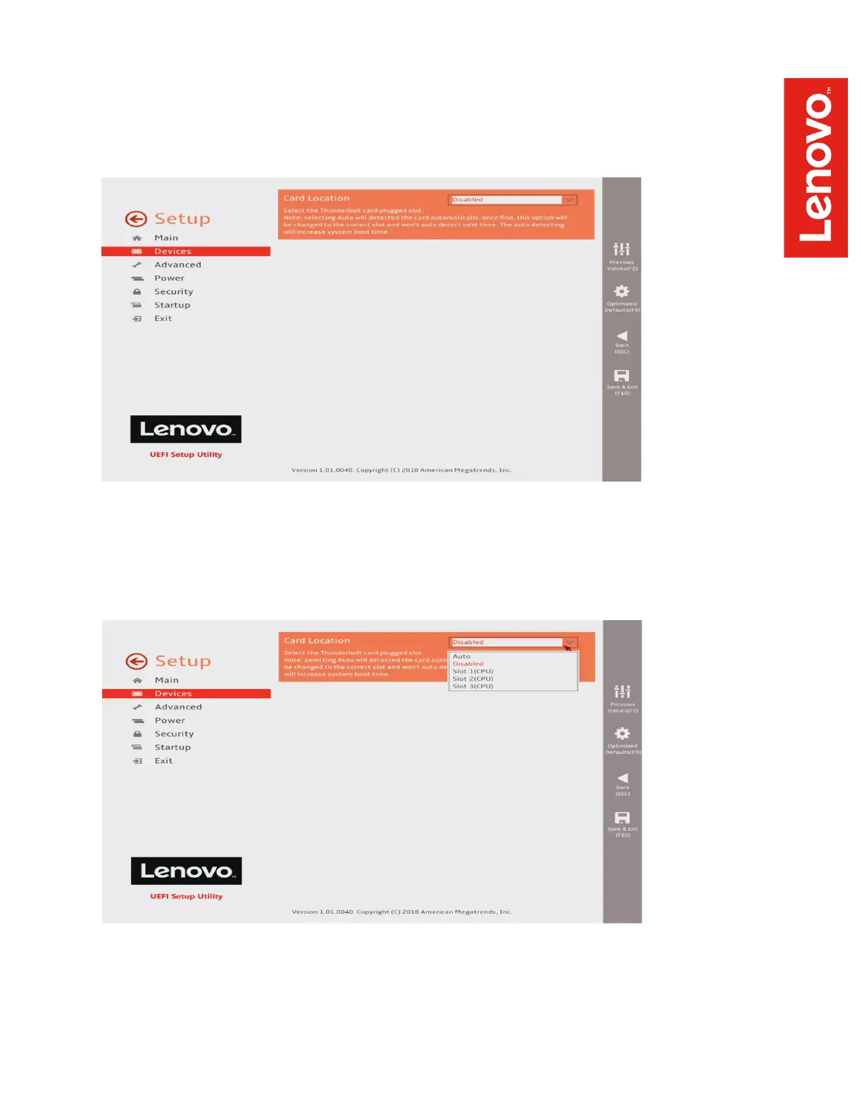 Click on the pulldown menu to enable the Thunderbolt card. The appropriate PCIe slot can be set