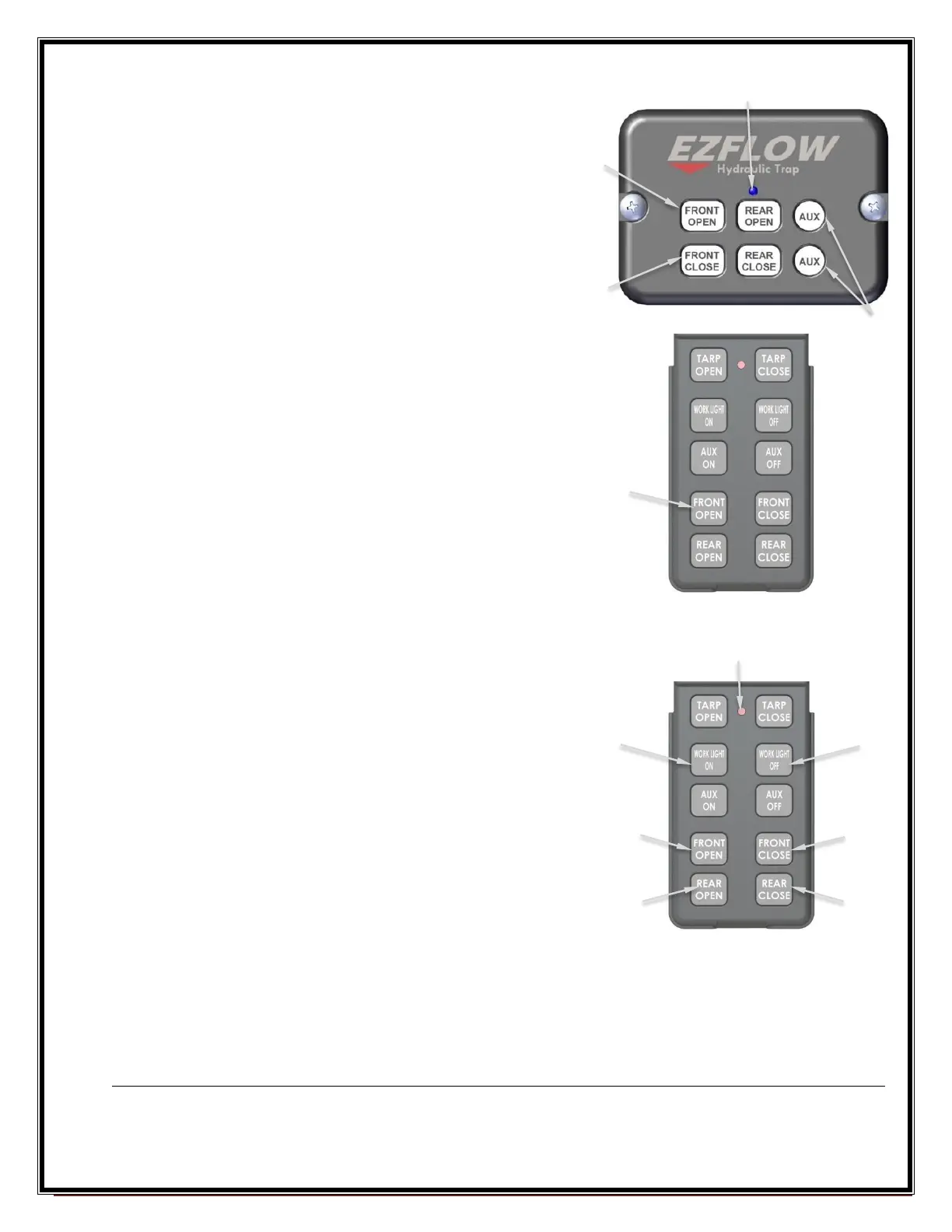 of the tarp or trap systems. When flip lid is in the closed position the remote is deactivated.