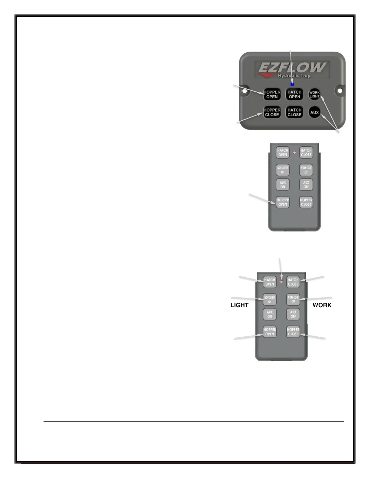 of the tarp or trap systems. When flip lid is in the closed position the remote is deactivated.