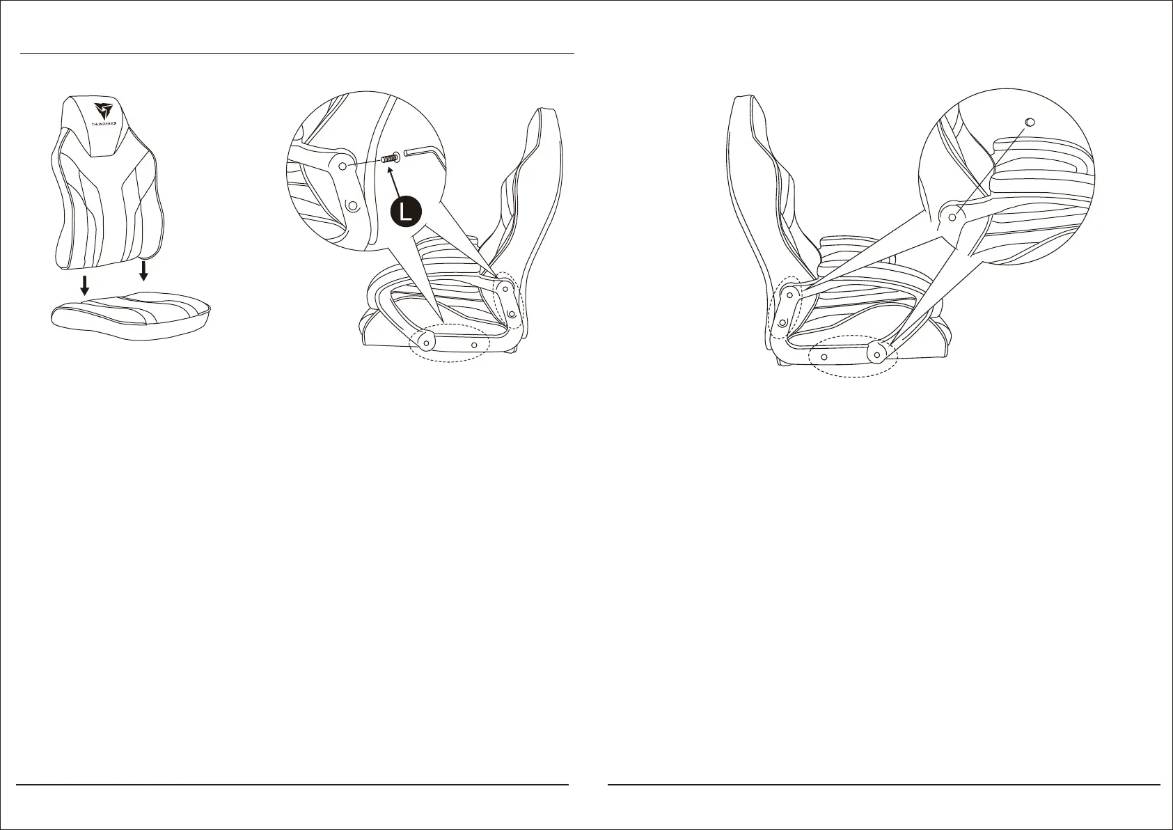 RU 1. Прикрепите спинку кресла к сидению. 2. Закрепите входящими в комплект винтами.