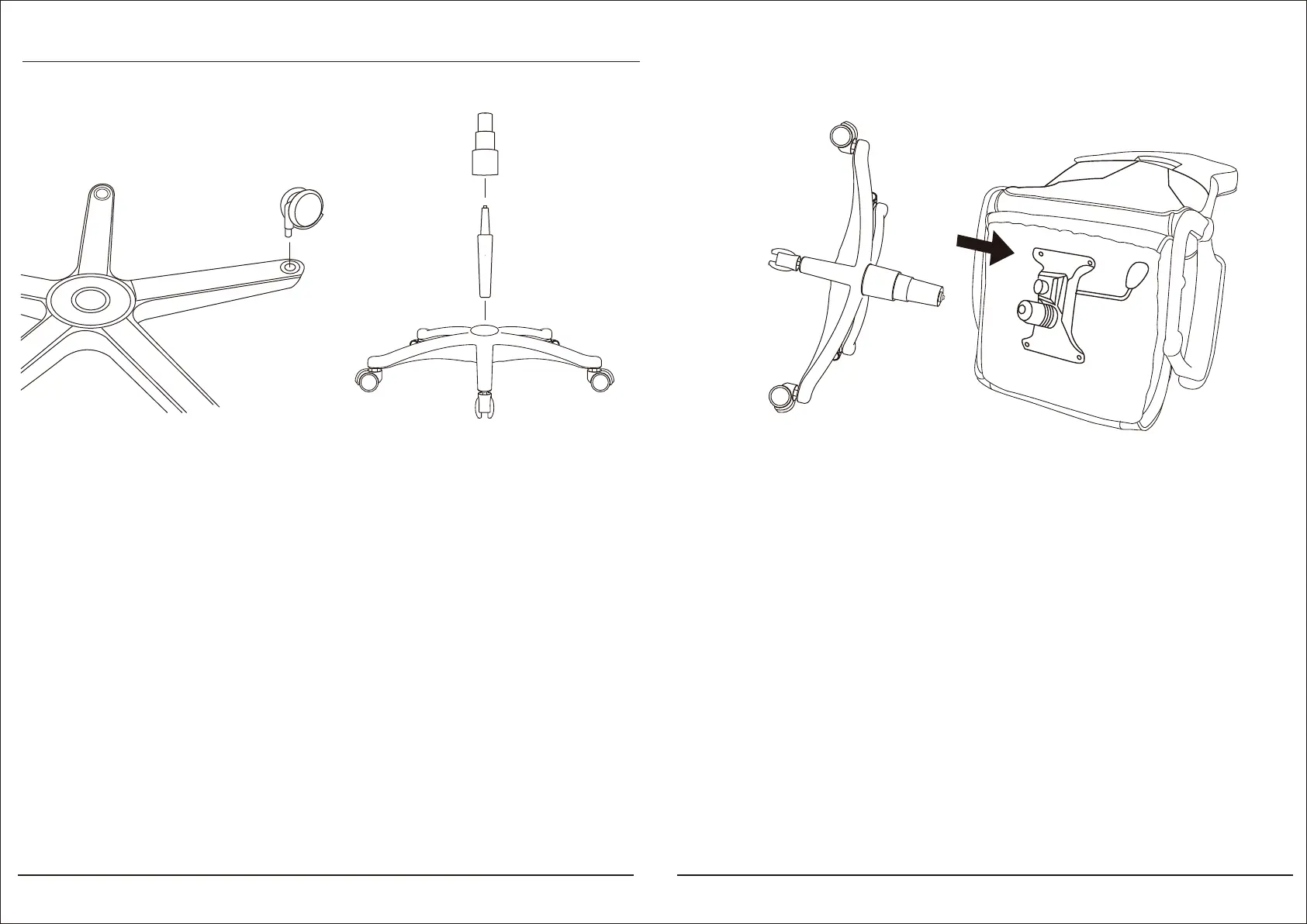 1. Push and twist the wheels into the star base. 2. Place the cylinder cover over the gas lift.