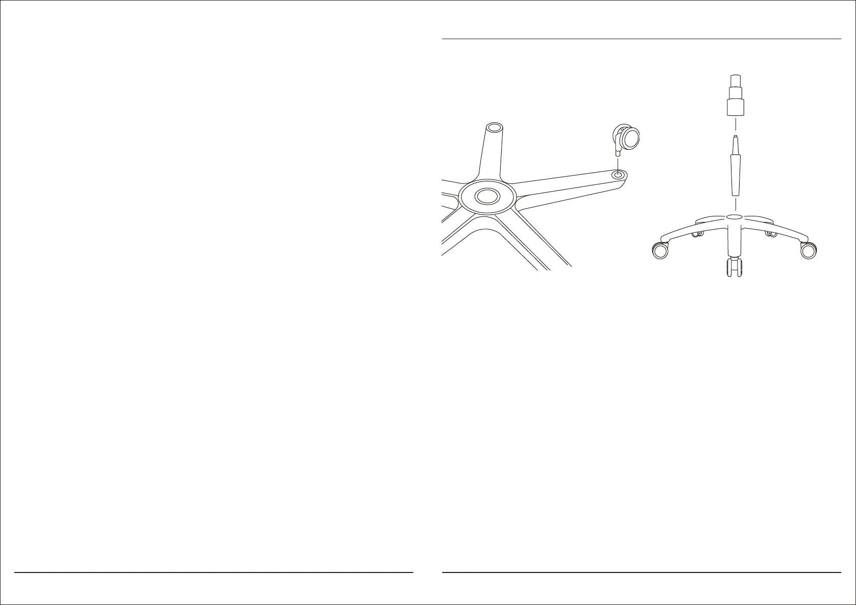 1. Push and twist the wheels into the star base. 2. Place the cylinder cover over the gas lift.
