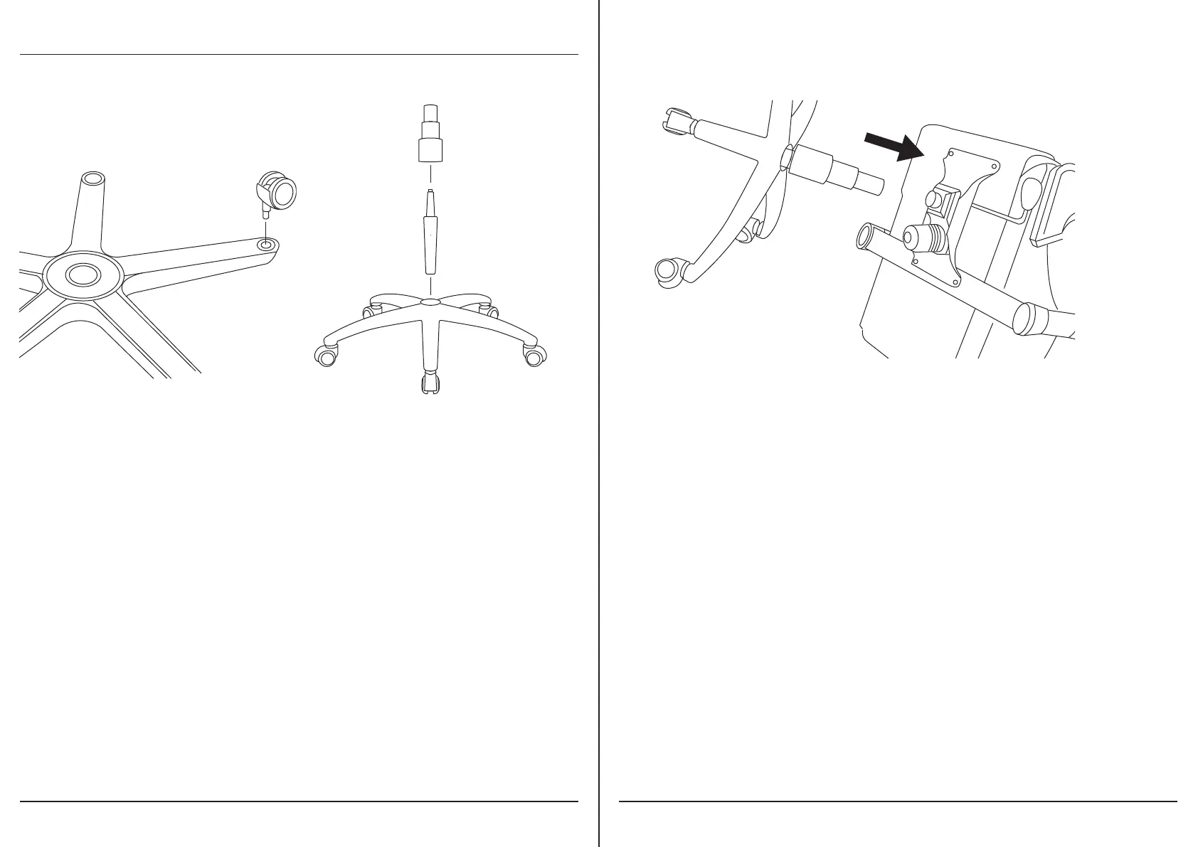 1. Push and twist the wheels into the star base. 2. Place the cylinder cover over the gas lift.